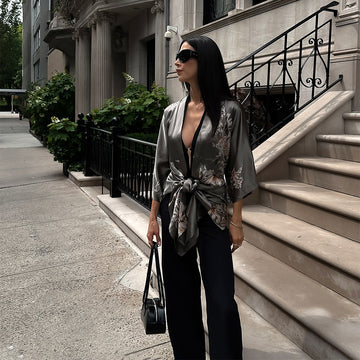 Washable Silk Yuri Short Kimono Robe (Plus Size)