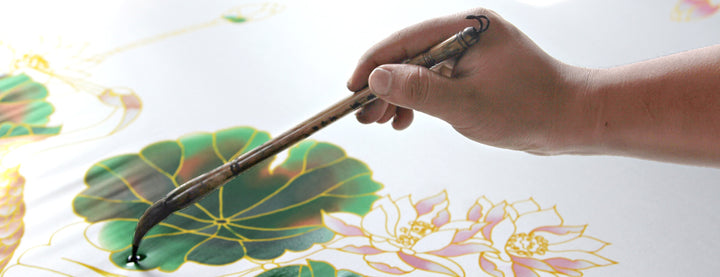 ...one of our most popular collections is our Handpainted Kimono collection, where we’re able to actually handpaint the design directly onto the silk. It’s such an intricate and delicate process, that this collection is one of our favorites, so we wanted to share the backstory and process we use to bring these works of art to life.